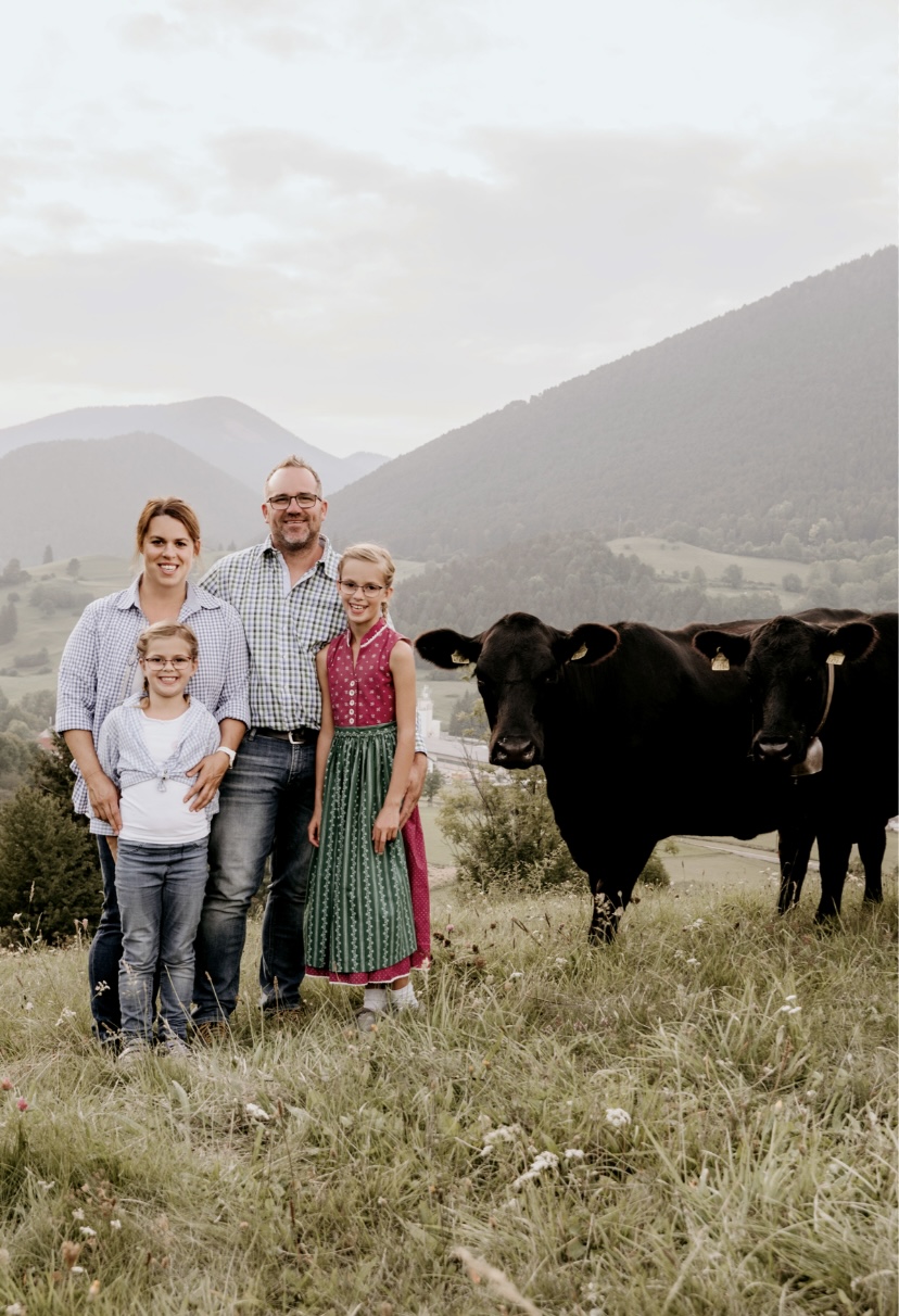 Unser Betrieb liegt am östlichsten Rand der Alpen in Niederösterreich, am Fuße des ersten 2000er, in Puchberg am Schneeberg. Wir bewirtschaften seit 2018 ca 30ha Grünland im Nebenerwerb. Zu unserem Betrieb gehören insgesamt 40 Stück Aberdeen Angusrinder, angefangen von der Mutterkuh, über Zuchttiere bis zum schlachtreifen Ochsen. Seit 2020 sind wir auch Herdebuchbetrieb. Unsere Rinder sind von Anfang Mai bis November auf der Weide, ein Teil von ihnen verbringt den Sommer auf der Schoberalm.